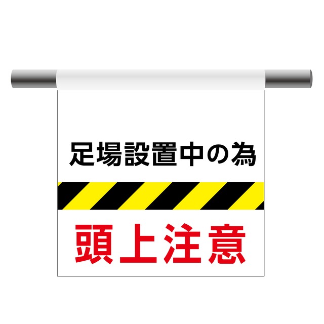 単管幕 足場設置中の為 頭上注意 ターポリン製看板 マジックテープでワンタッチ取付 単管のれん NDTM_0028