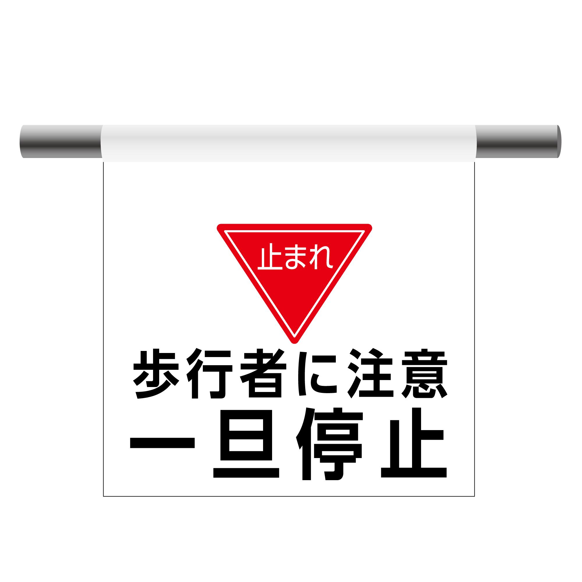 単管幕 止まれ 歩行者に注意 一旦停止 ターポリン製看板 マジックテープでワンタッチ取付 単管のれん NDTM_0031