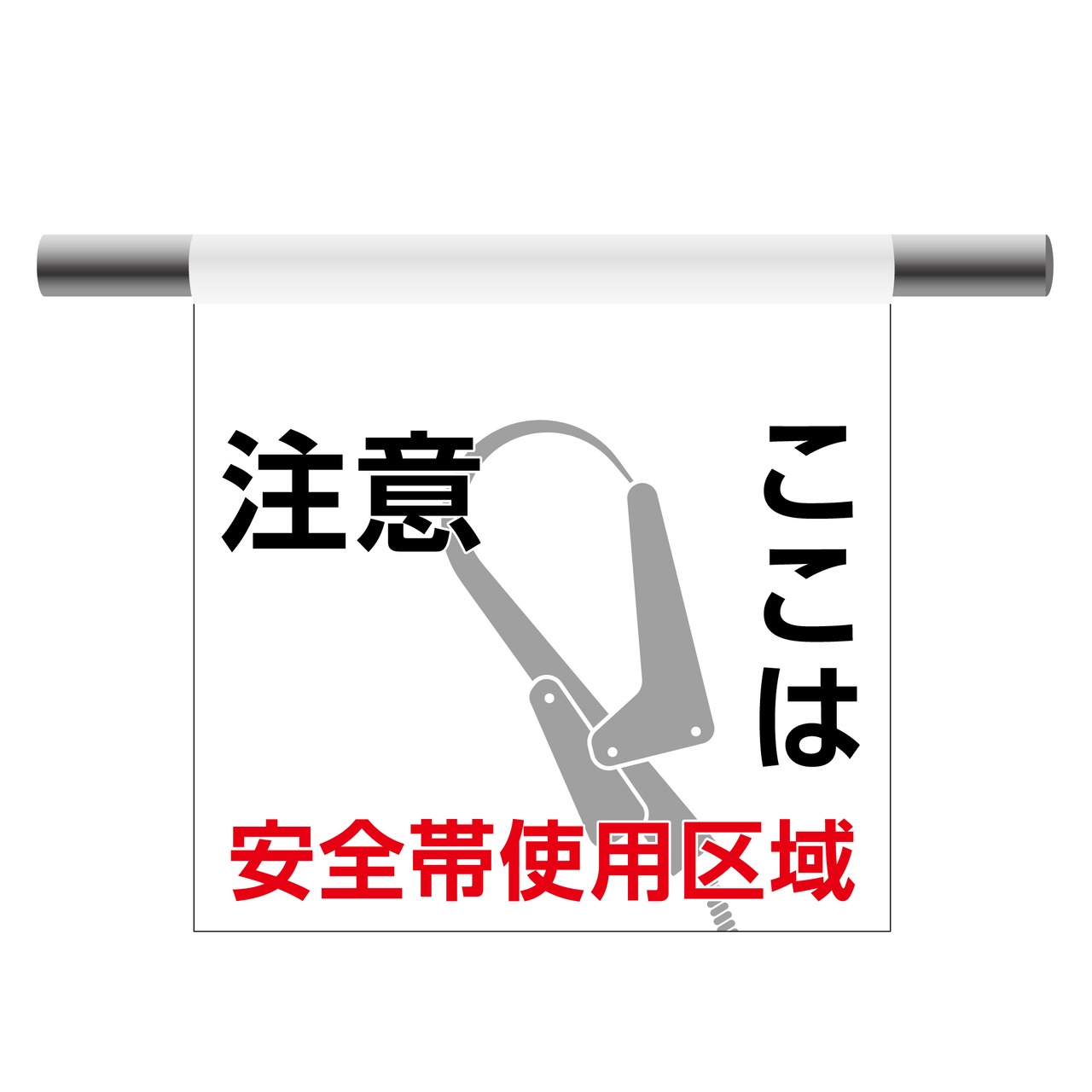 単管幕 注意 ここは安全帯使用区域 ターポリン製看板 マジックテープでワンタッチ取付 単管のれん NDTM_0048