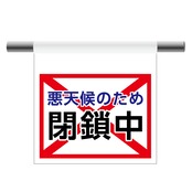 単管幕 悪天候のため 閉鎖中 ターポリン製看板 マジックテープでワンタッチ取付 単管のれん NDTM_0052