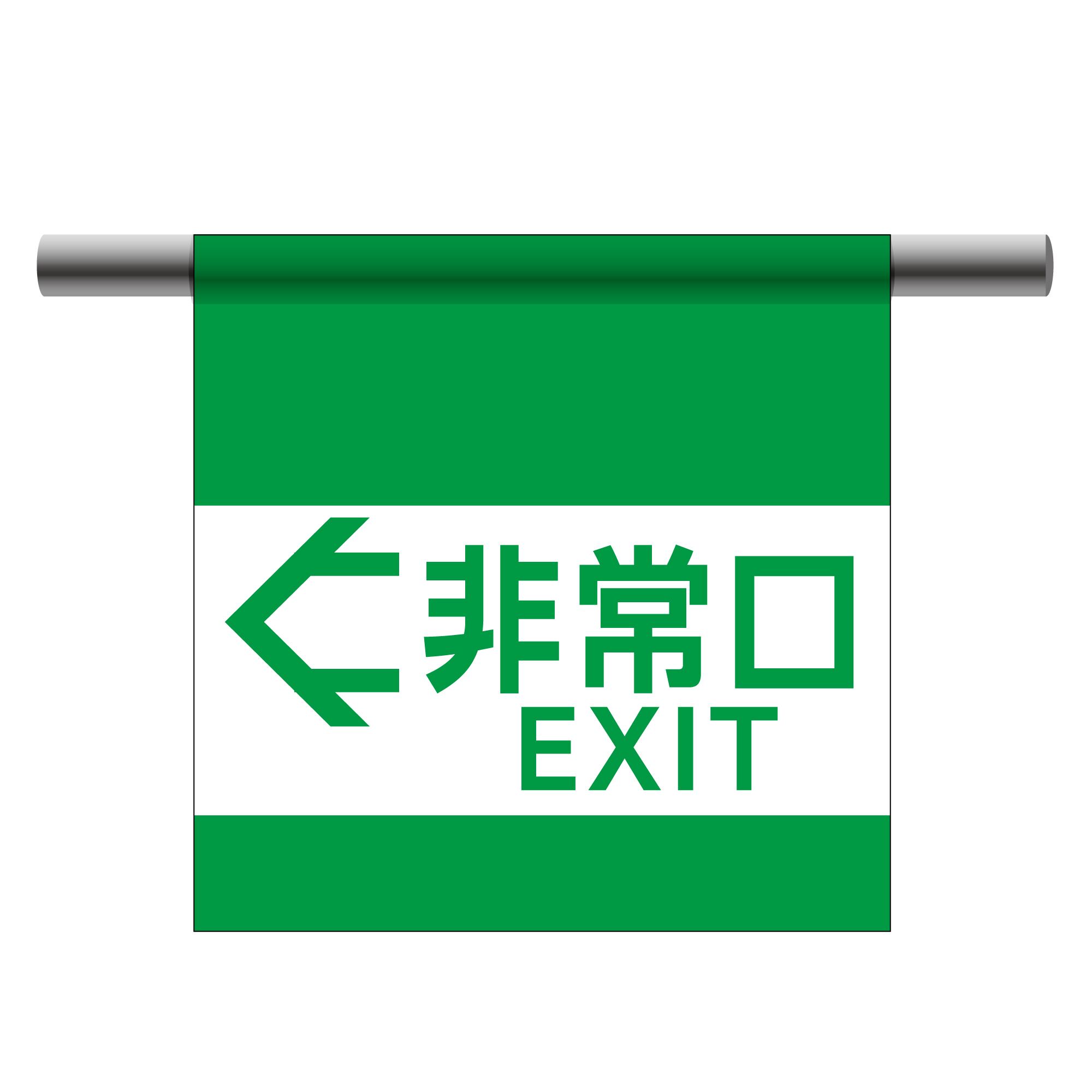 単管幕 非常口 EXIT 左矢印 ターポリン製看板 マジックテープでワンタッチ取付 単管のれん NDTM_0057