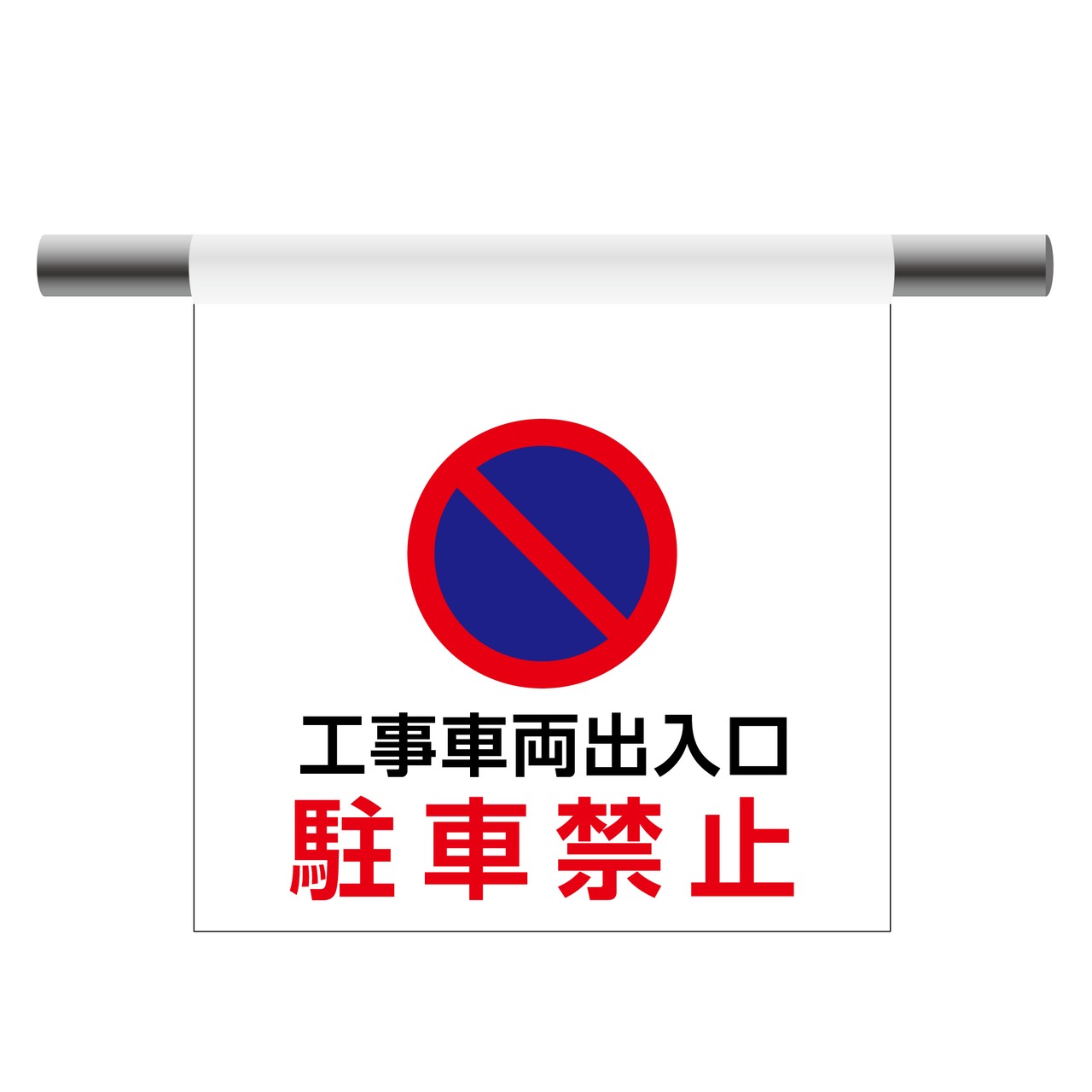 単管幕 工事車両出入口駐車禁止 ターポリン製看板 マジックテープでワンタッチ取付 単管のれん NDTM_0071