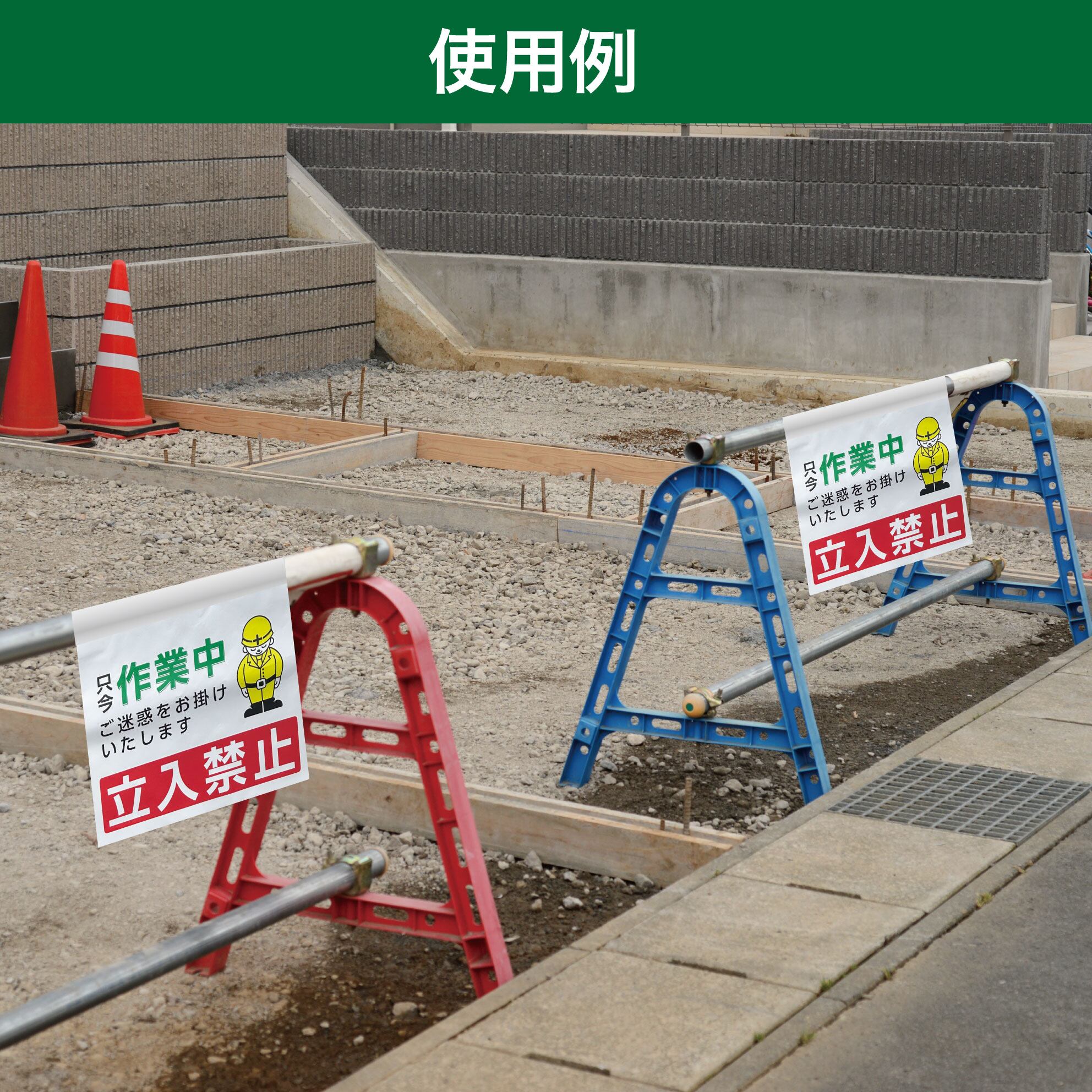 単管幕 迂回路 右矢印 足場設置中の為迂回のご協力をお願いいたします ターポリン製看板 マジックテープでワンタッチ取付 単管のれん NDTM_0090 | NAGAI DESIGN (永井デザイン企画)